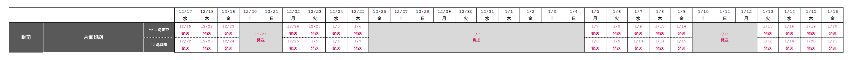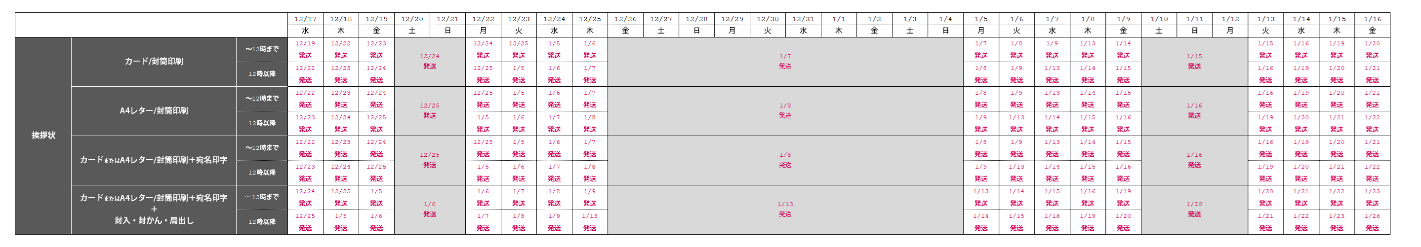 ◆休業期間前後の発送予定につきましては、下記スケジュール表をご覧ください。