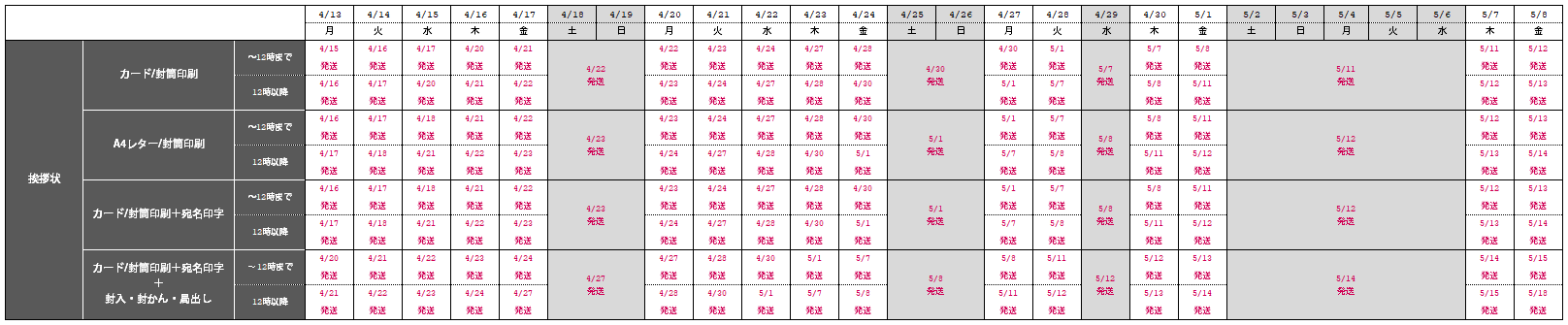 【重要】ゴールデンウィーク期間における出荷日のお知らせ