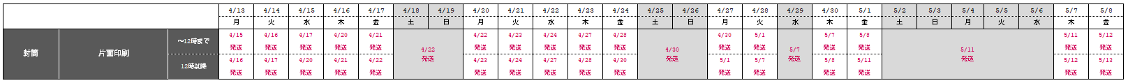 4月30日(木)、5月1日(金)、5月7日(木)に順次対応させていただきます